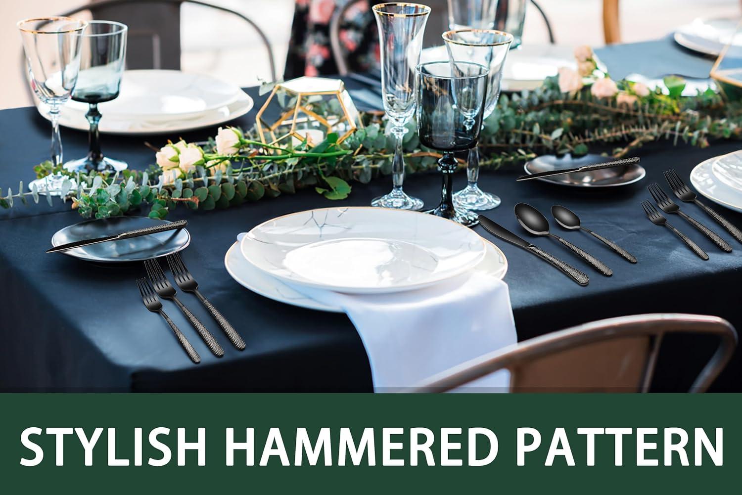 ASHIONABLE APPEARANCE – Elegant style with hammered design on the front side of each square handles, Making every meal like a high-end banquet and bring a pleasant dining atmosphere, Matching different tablecloths, The design of the handle can highlight more styles