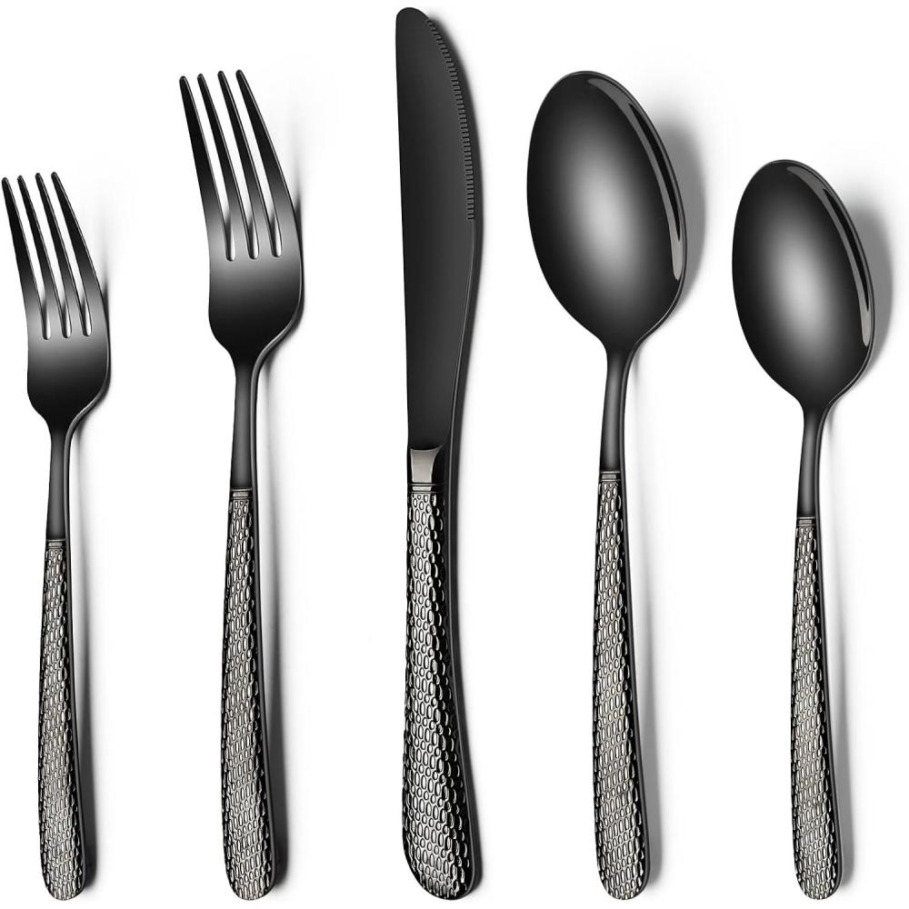COMFORTABLE DESIGN: This flatware set has a classic silhouette with clean lines and polish-finish surface in all black, a good choice to go with your existing tableware. The smooth edge of the handle is pleasure to hold, appropriate weight and perfect balance are added to ensure maximum comfort during use.